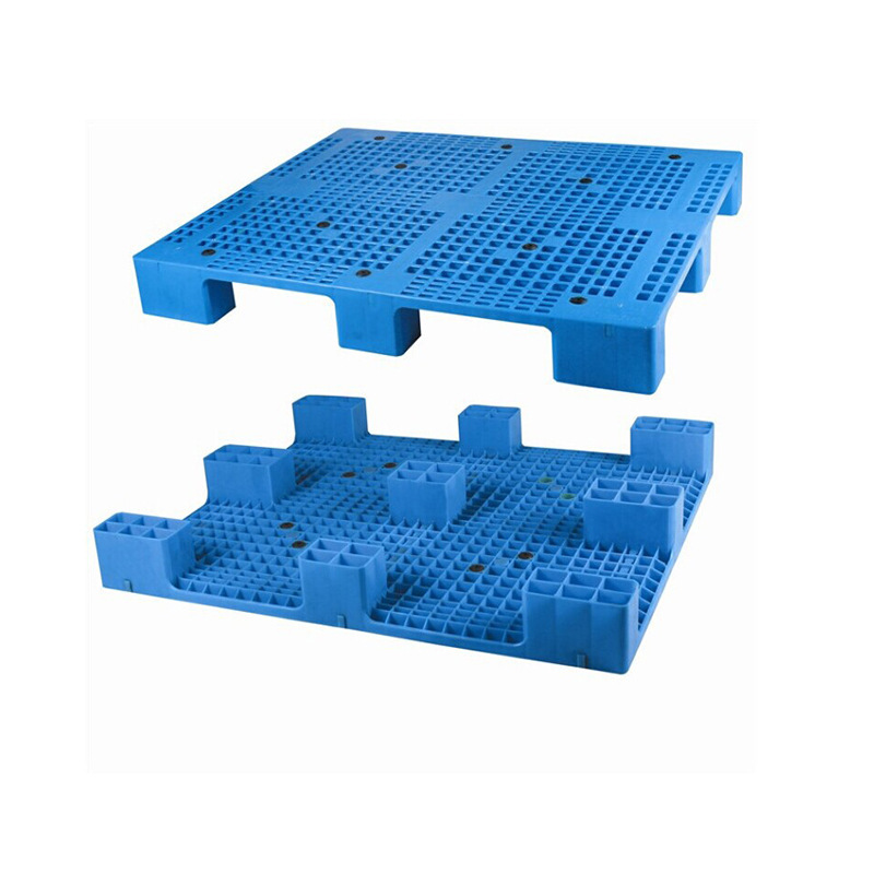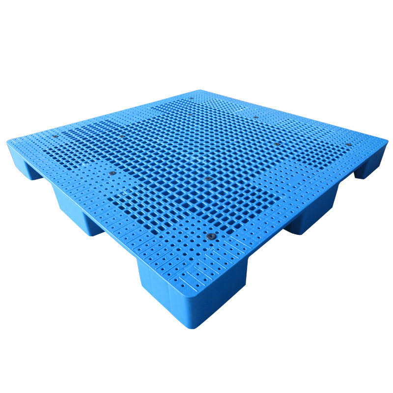 九脚网格塑料托盘的九脚网格托盘其底部是有‘九个腿’组成的,表面为‘网格’状,顾行业为方便称其为九脚网格托盘,九脚网格托盘大多型号的都为轻型的塑料托盘,不易用于上货架或者较重货物的周转使用,大多情况下九脚网格塑料托盘都是用来仓库货物垫仓板防潮使用,对于轻型货物的周转也可。