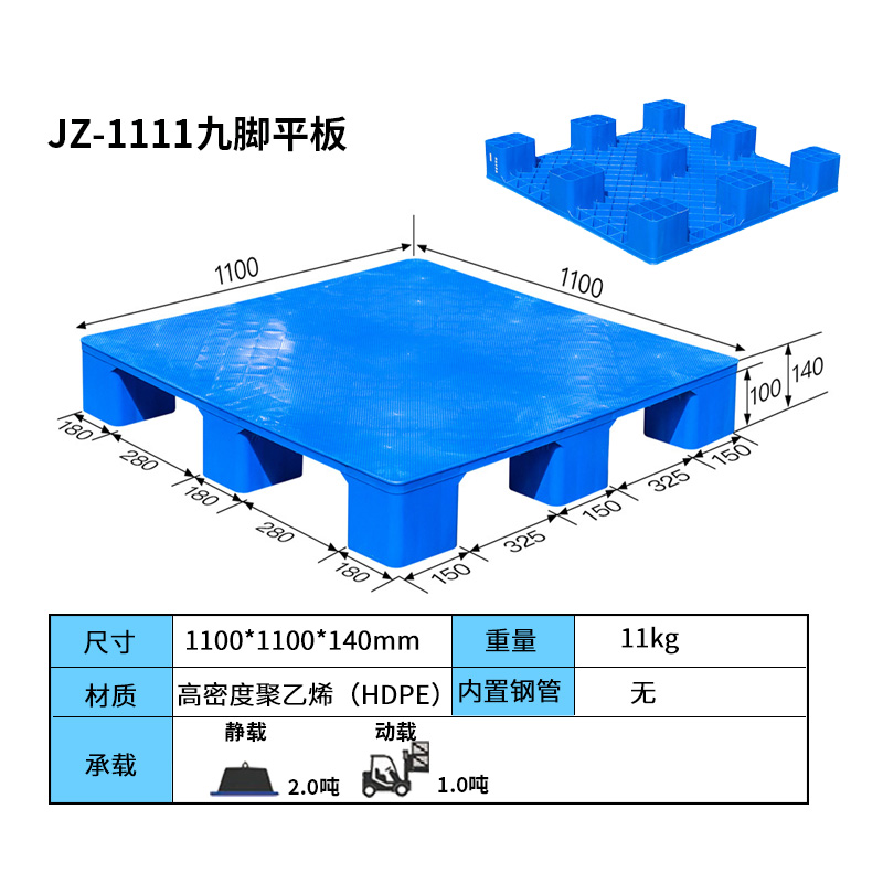 1111九脚平板塑料托盘