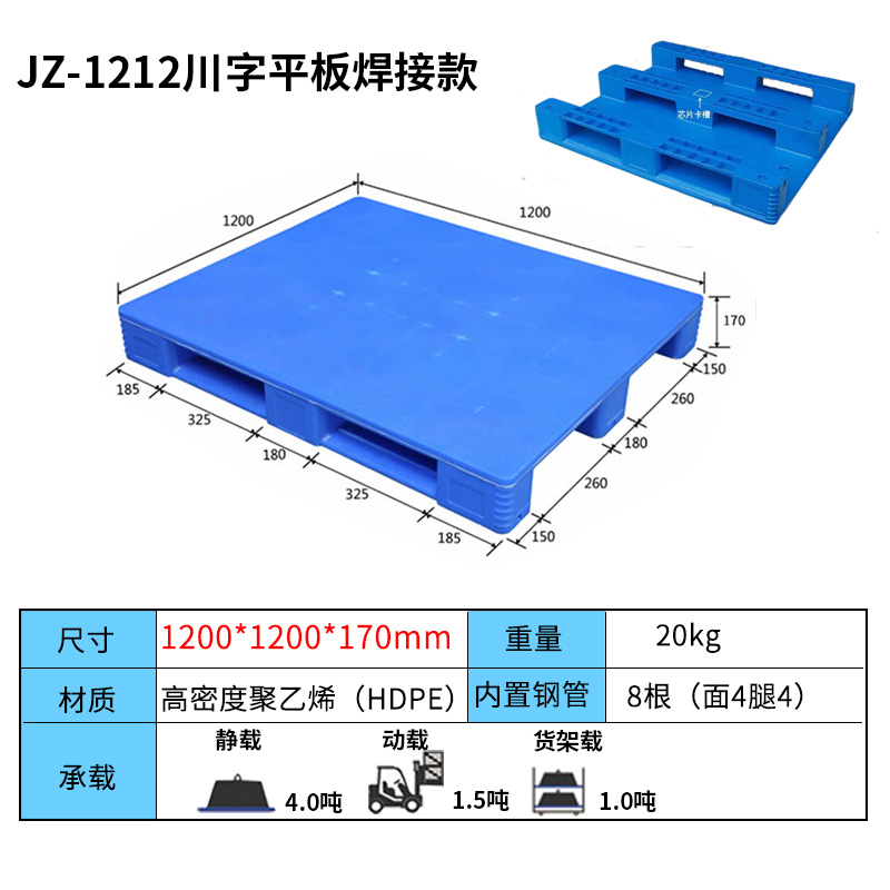 平板川字塑料托盘的结构设计合理,使其具有较强的承载能力。根据不同的使用需求,塑料托盘可以定制不同的尺寸和载重能力,满足不同场景下的物流需求。